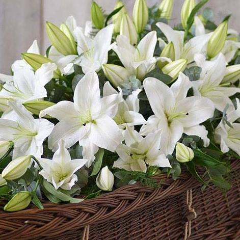 A classic spray of fragrant oriental lilies contrasted beautifully with foliage.